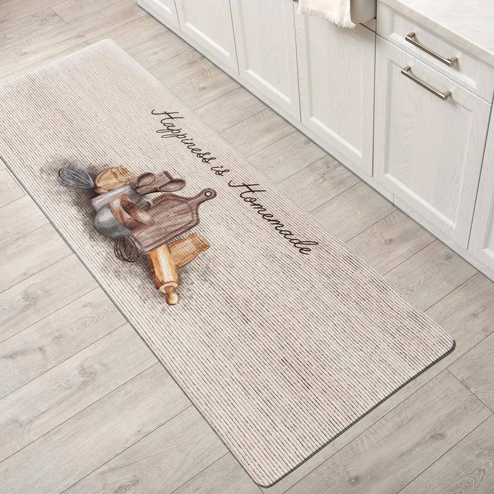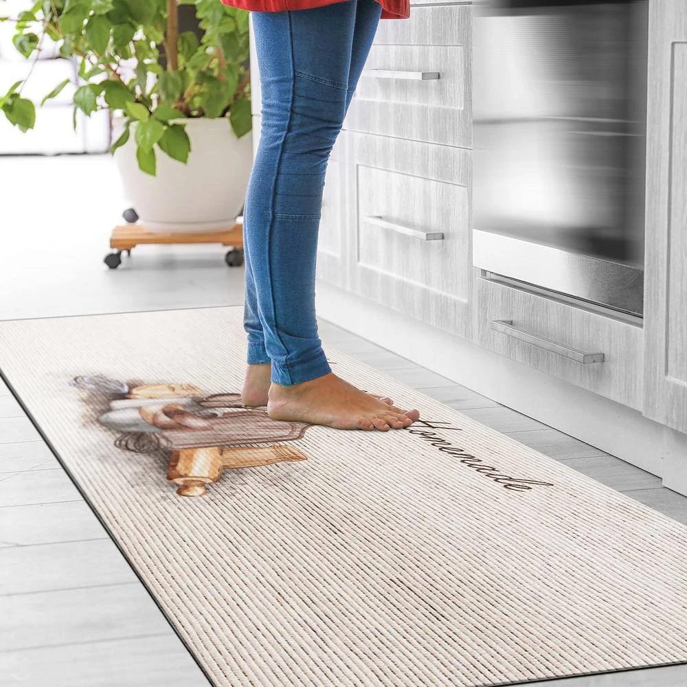 - Multi-purpose:Kitchen mats widely used for home decor,indoor front welcome mat,kitchen rug,laundry room,standing desk,back doors,garage,office. Nonskid backing holds the mat in place for extra safety.