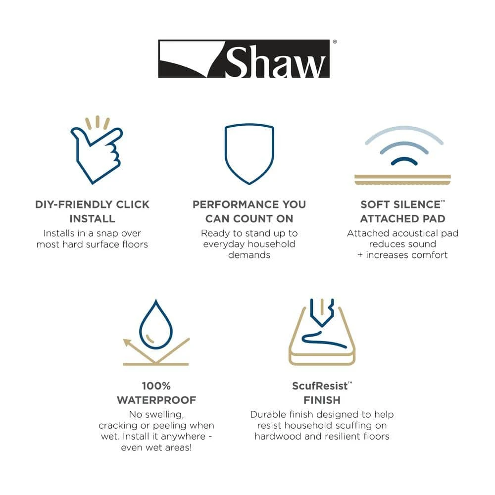 - 6 vinyl planks per case; 21.79 sq. ft. per case