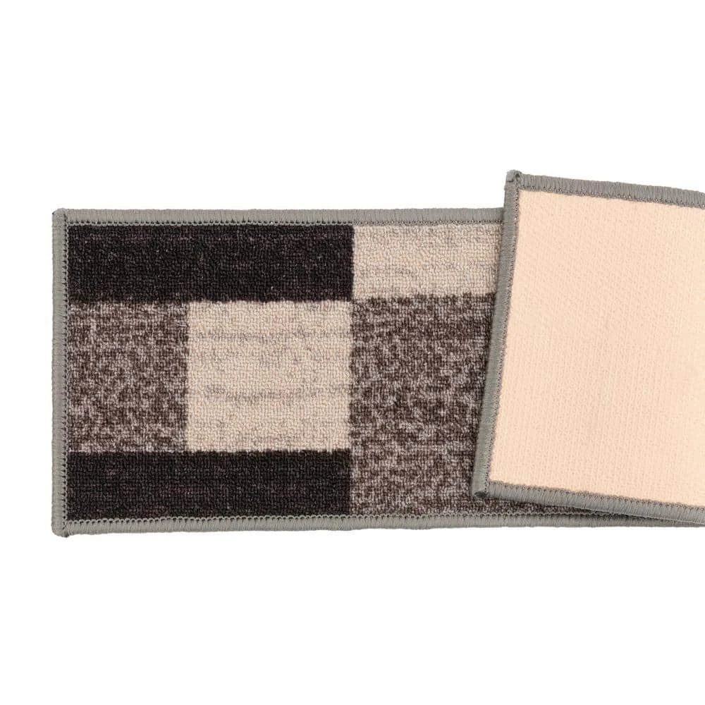 Enrich your stairs with these stunning, yet practical and decorative stair treads. The distressed geometric design adds interest and style to every step. The rubber backing provides additional safety for climbing kids and pets. At 26 inches x 8.6 inches, these machine washable treads are ideally sized for the majority of staircases.