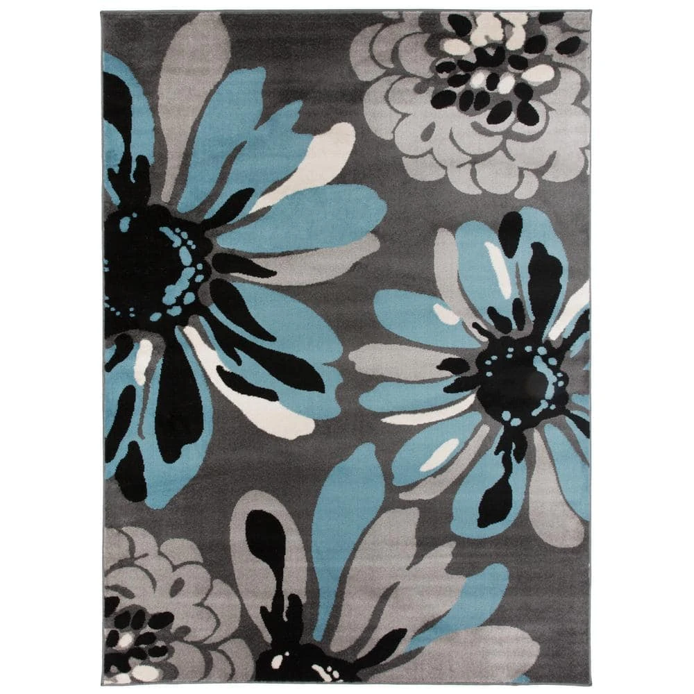 Modern Floral Flowers Blue 5 ft. 3 in. x 7 ft. 3 in. Indoor Area Rug by World Rug Gallery