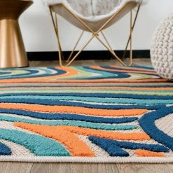 Blue 2 ft. x 7 ft. Contemporary Bohemain Striped Indoor/Outdoor Area Rug by World Rug Gallery
